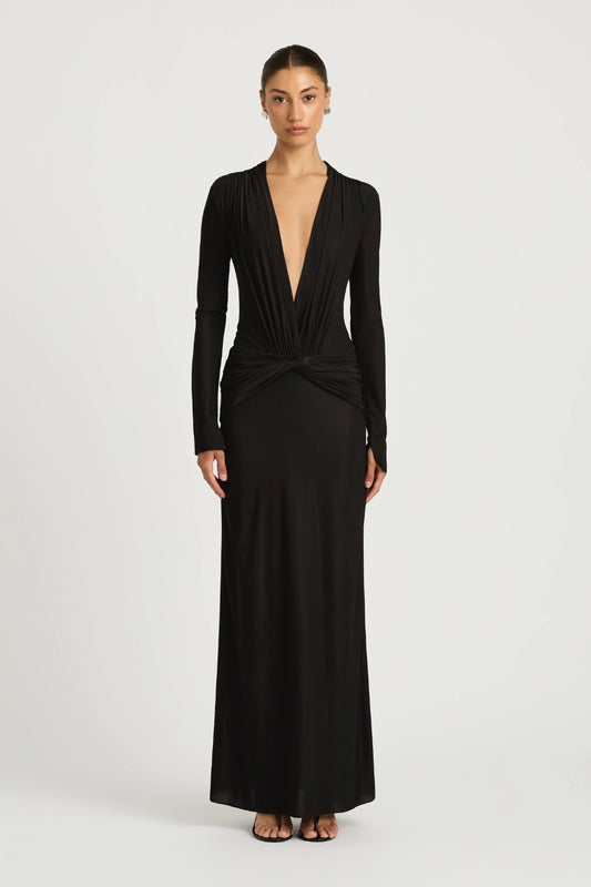 Cotton Mix Denim Square Neck Midi Dress Dark Blue