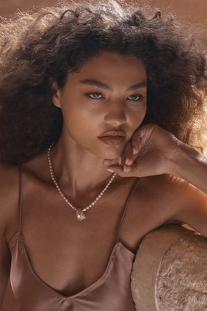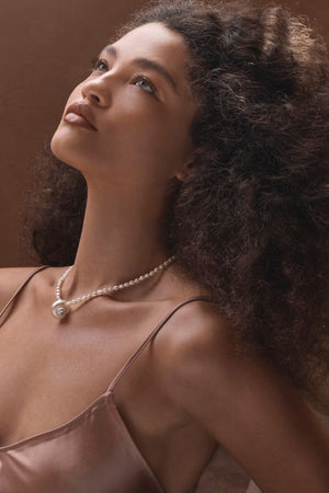 The Narni Necklace by Amber Sceats captures refined coastal beauty through its luminous mix of natural seashells and AAA+ freshwater pearls. Handcrafted in Italy and finished in 24K gold plating, this elegant piece exudes effortless sophistication — perfect for everyday wear or elevated resort styling.