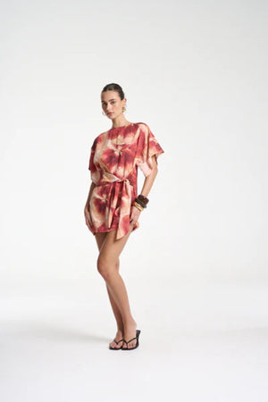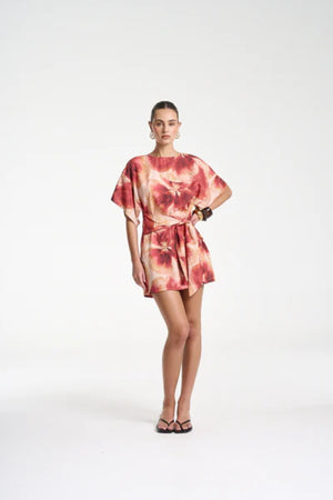 Introducing the Tie Front Dress by Summi Summi, a flattering mini silhouette showcasing the hand-painted Aloha print. Designed with a high neckline, modest sleeves, and a wrap overlay that ties at the front or back, this versatile style allows you to customise the fit and length to suit your look. Effortlessly blending comfort with a polished finish, it’s perfect for both casual days and elevated warm-weather outings.