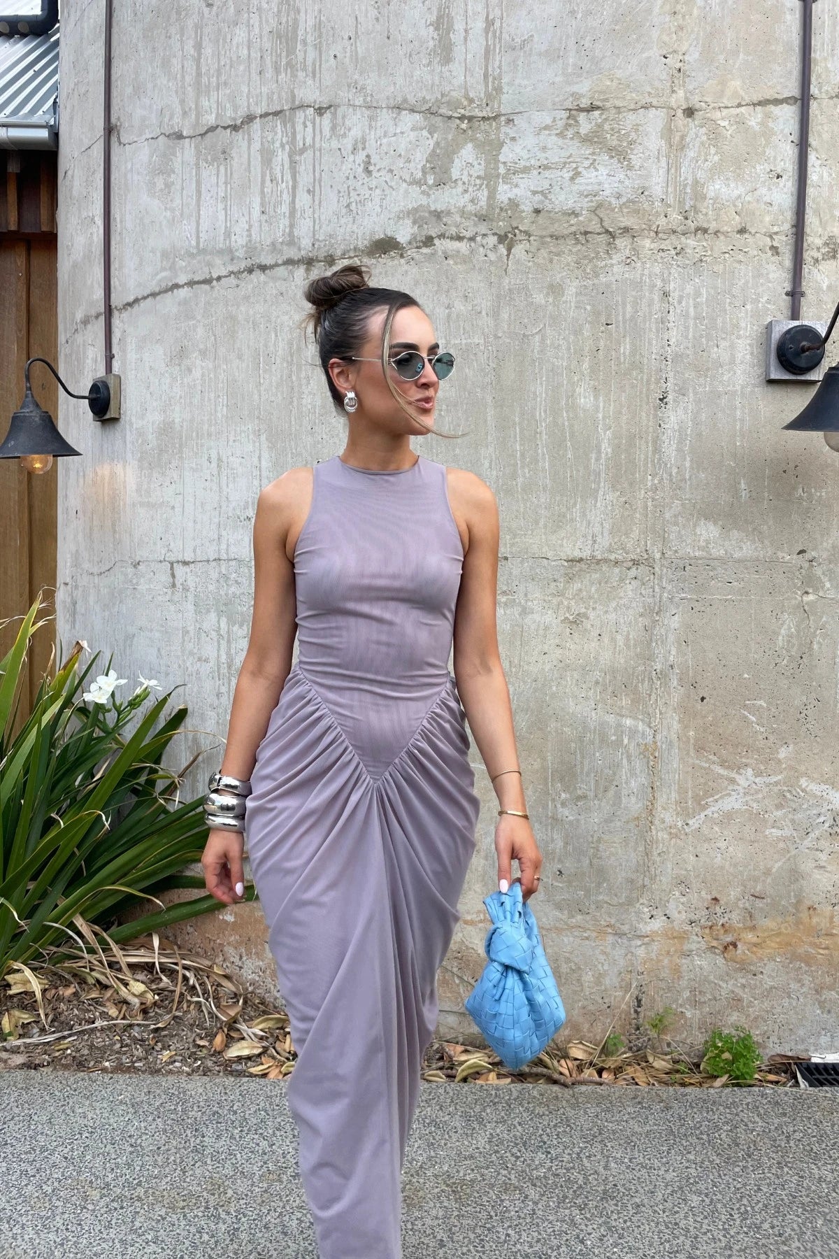 Introducing the Othelia Gown in Mushroom by Effie Kats — a soft, earthy silhouette that pairs feminine sensuality with nature-inspired tones. Crafted from buttery stretch mesh, this gown features a form-fitting bodice that transitions into a delicately shaped skirt. Perfect for vineyard weddings or autumnal evenings under the stars.