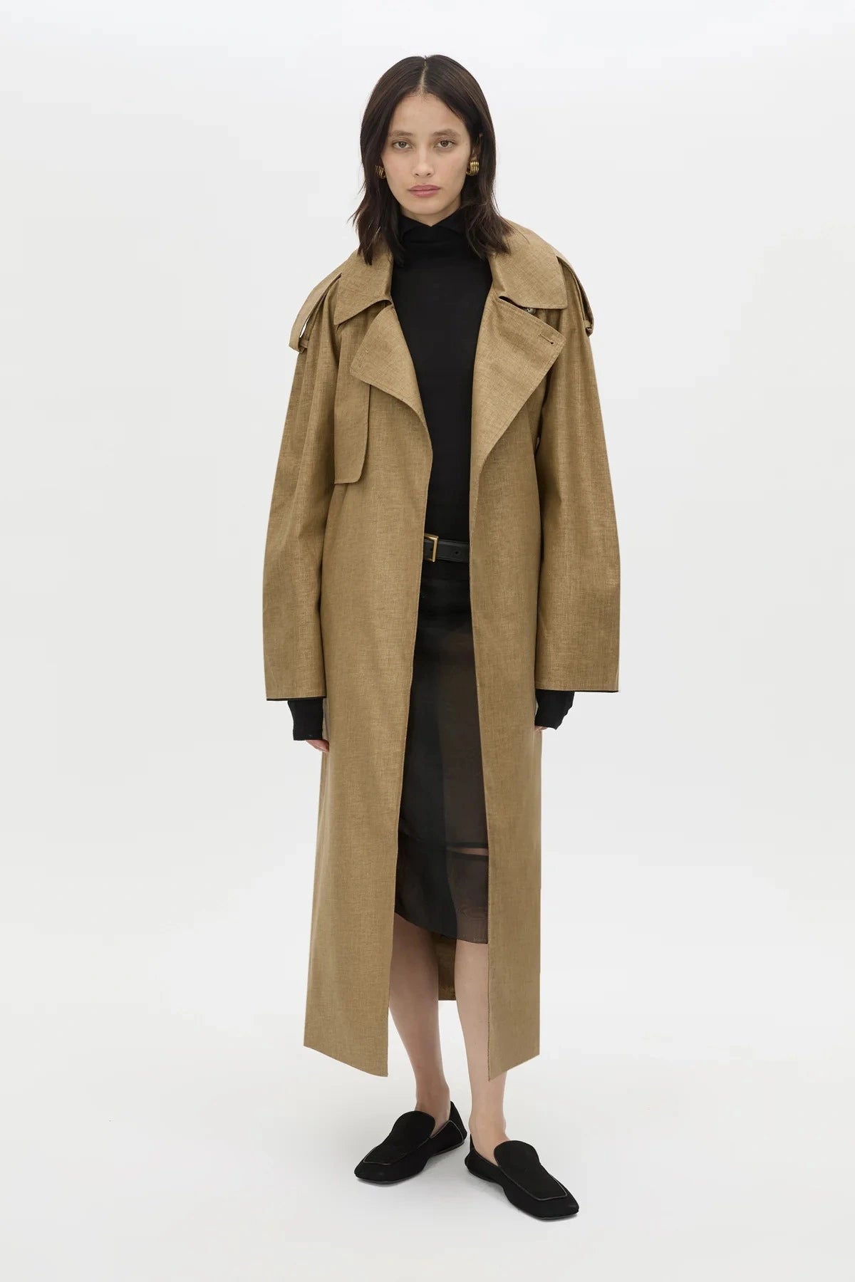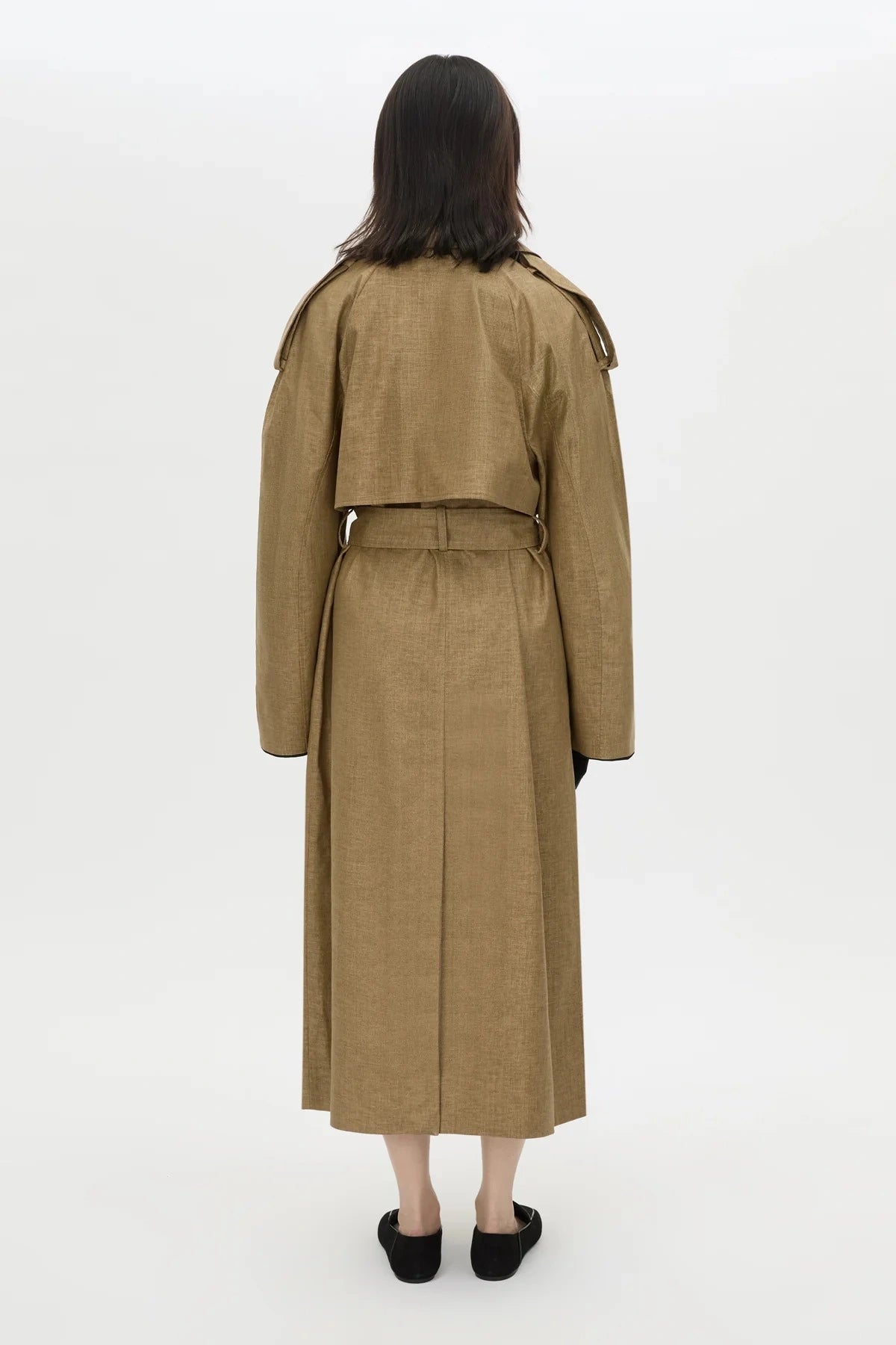 This oversized trench coat is crafted from a viscose-linen blend and designed with classic utility details including shoulder epaulettes, storm flaps and a waist belt for adjustable shape. Contrast undercollar and sleeve detailing elevate the silhouette, while raglan sleeves, a back vent and full lining ensure effortless layering and comfort.