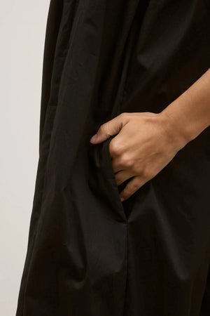 Introducing the Carrie Maxi Dress in Black by Bayse, a voluminous silhouette crafted for modern ease. Made from crisp lightweight cotton, this maxi flows with movement while maintaining structure, complete with a gathered neckline and fine adjustable straps.