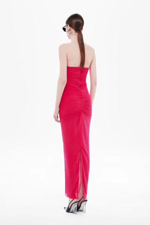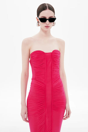 The 'Totem' Stocking Jersey Midi Dress Cerise