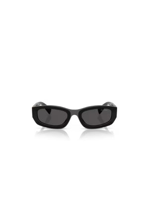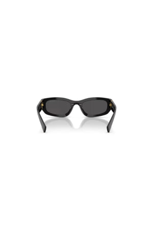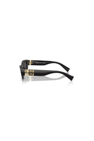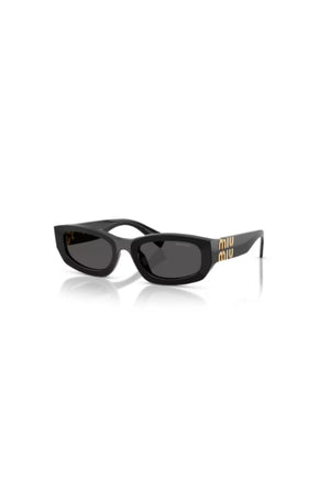 Minimalism with a mischievous edge — the Miu Miu MU B04S Sunglasses in Black embody the brand’s offbeat elegance from every angle. Crafted from sleek acetate, this irregular silhouette features bold temples and the signature vertical Miu Miu logo, balancing everyday versatility with elevated style.