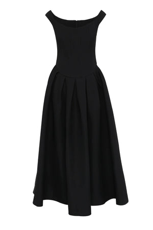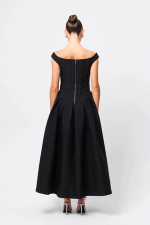 Modern femininity takes form in the Adoration Maxi Dress Black by Mossman. Inspired by classic corsetry, this statement silhouette features an off-shoulder neckline and a structured, boned bodice that flows into a full-length A-line skirt. Designed with soft pleats at the waist and functional side pockets, it’s equal parts flattering and functional. Perfect for formal occasions or elegant evenings, this timeless dress blends drama with sophistication.