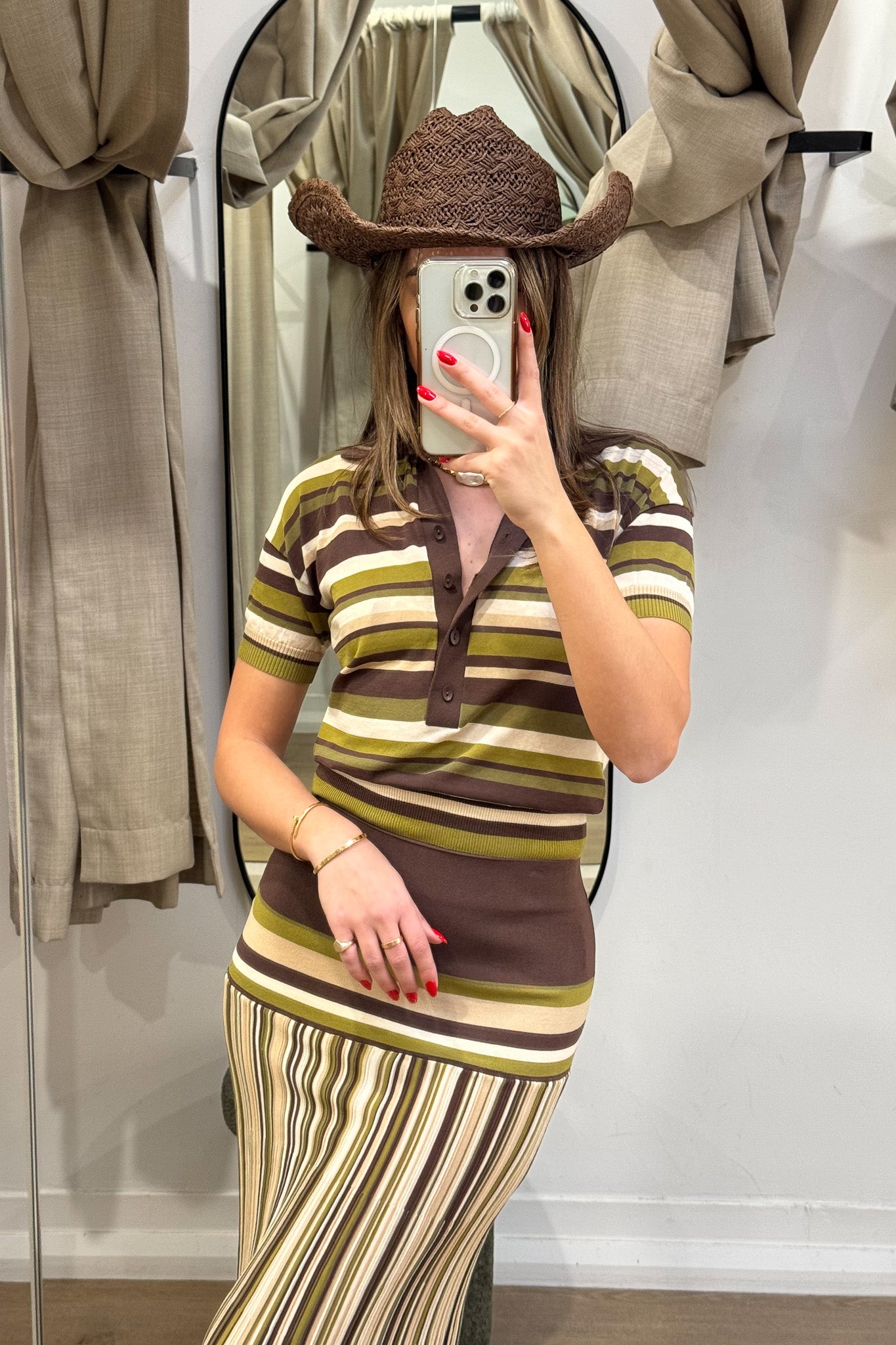 Faithfull the Brand Sable Polo Shirt Espresso Pine Stripe