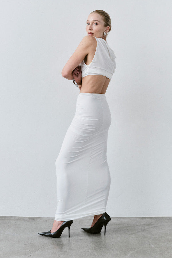 Our Molly King X Bayse collection is back and here to bring you newly arrived styles that are a must-have for your wardrobe this season. Meet our Liberty Top, she is the perfect wardrobe essential that will elevate every outfit. Featuring double lined soft-stretchy material, ruching down one side and an asymmetrical neckline, she is the perfect combination of chic and comfort. Style with any one of our pants for a more casual look, or for an evening out pair with our Manhattan Maxi Skirt in Black.