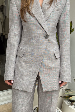 The Sullivan Blazer by Camilla and Marc offers a refined interpretation of classic tailoring, designed in a soft oat hue and crafted from a premium blend of Australian Wool, bamboo, linen, and silk. A single exposed front button and precise tailoring seams create a flattering, fitted silhouette, while welt pockets and a notched lapel complete the structured, modern look. Ideal for elevating both workwear and occasion dressing.
