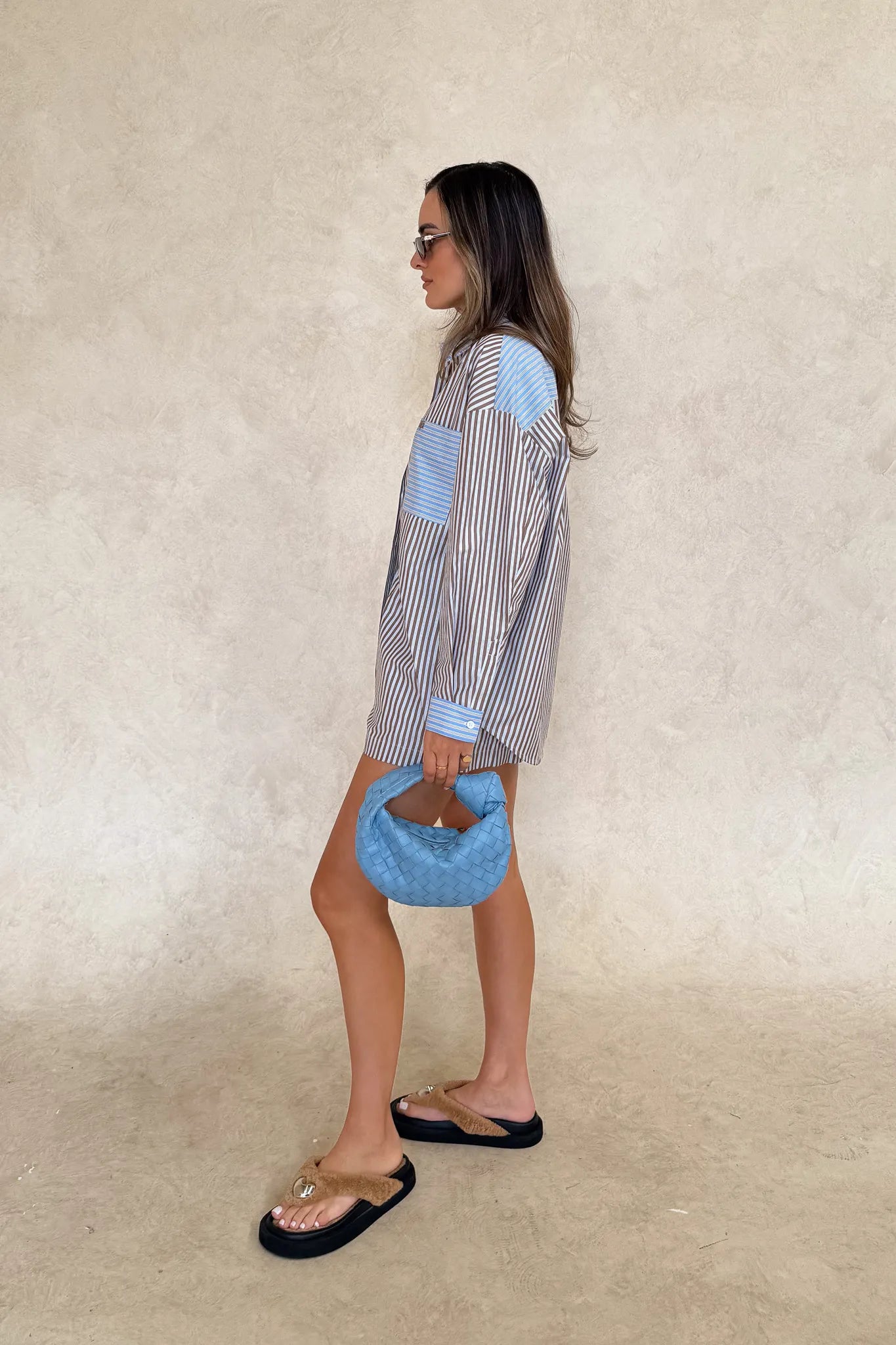 Mossman Repeat After Me Cropped Shirt Blue Stripe