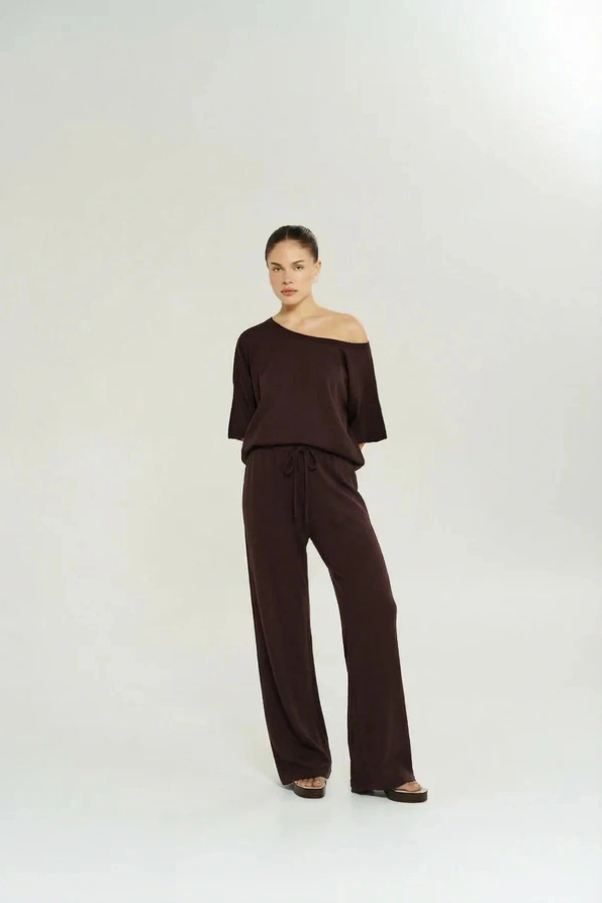 Introducing the Lounge Pant in Chocolate by Summi Summi — an elevated lounge essential designed for effortless comfort and everyday wear. Crafted from soft cotton slub knit, this relaxed silhouette features a flattering flared leg and fluid drape that moves easily from at-home lounging to casual outings.