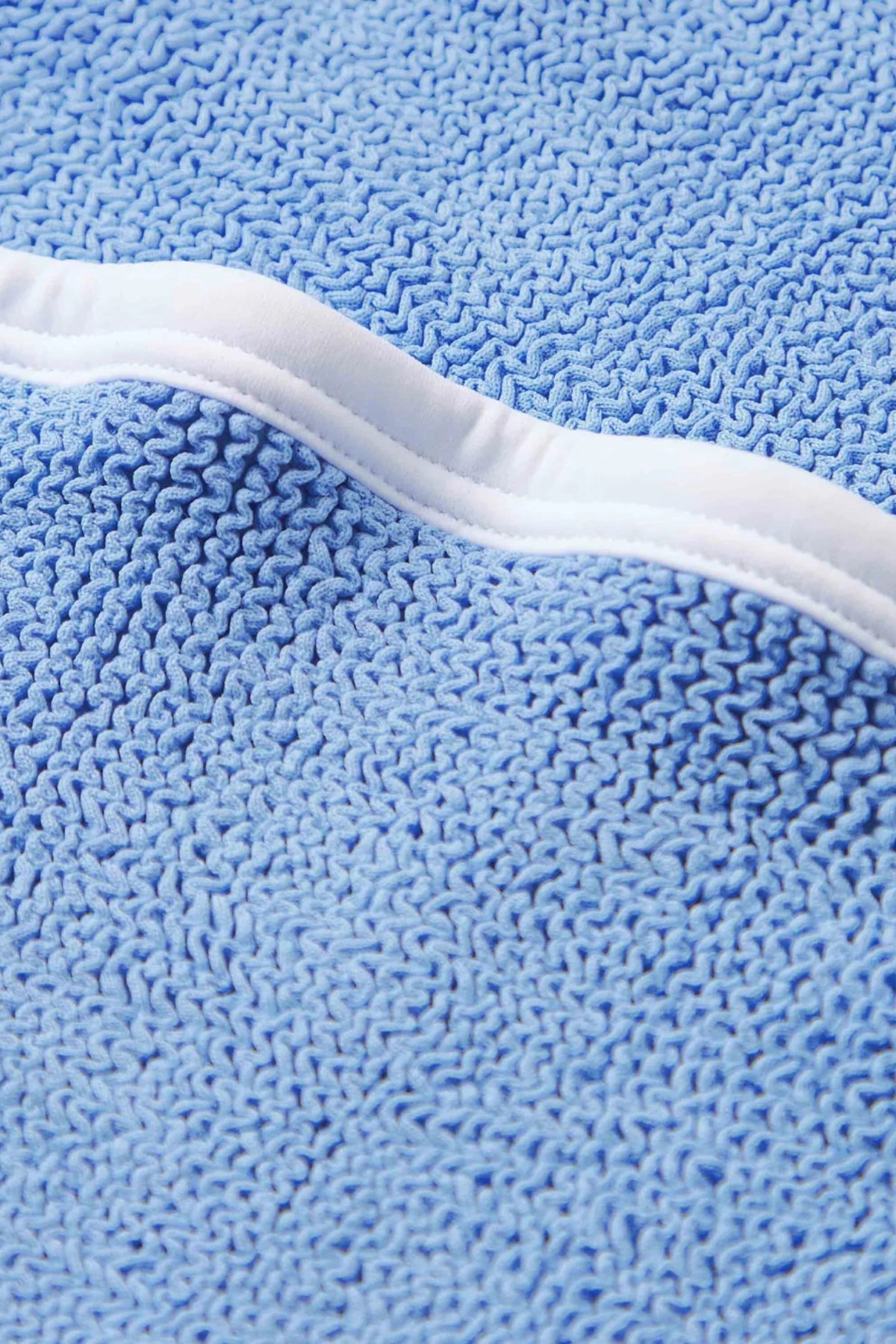 • Devyn Swimskirt by Hunza G, a crinkle-textured piece worn as a tube top or skirt. Perfect for beach layering or versatile summer styling.
