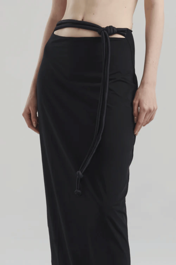 From sea to soirée with Maygel Coronel's Sinara maxi skirt. The shimmering knot at the waist lets you play and adjust to your shape. Practical as a beach cover-up, and perfect for effortless looks at night.