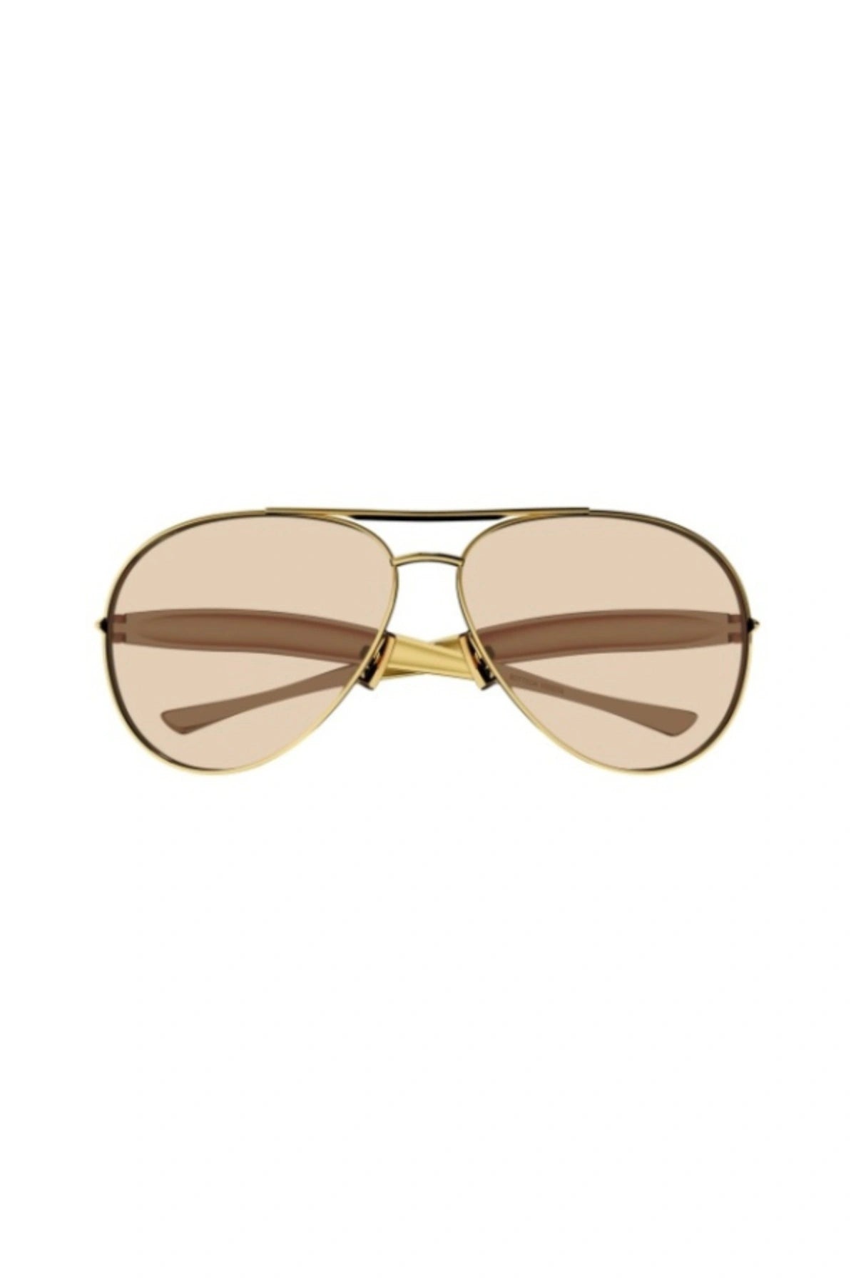 Full metal pilot style. Iconic sardine temple featuring very voluminous geometry and hollowed out from the inside to reduce its weight. Top bar with Bottega Veneta Logo in the top view.