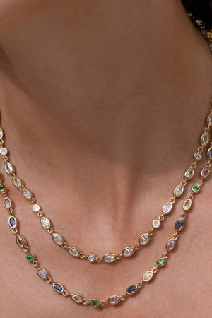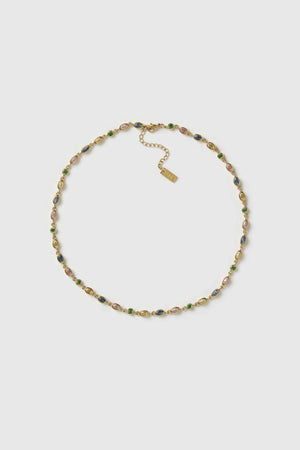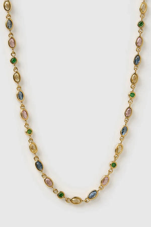 Infused with playful elegance, the Isadora Necklace features coloured zircon stones set in polished gold bezels for a refined pop of shimmer. Crafted from recycled materials and finished with a luxe gold PVD coating, this piece is designed to elevate your everyday look. Also available in Stone.