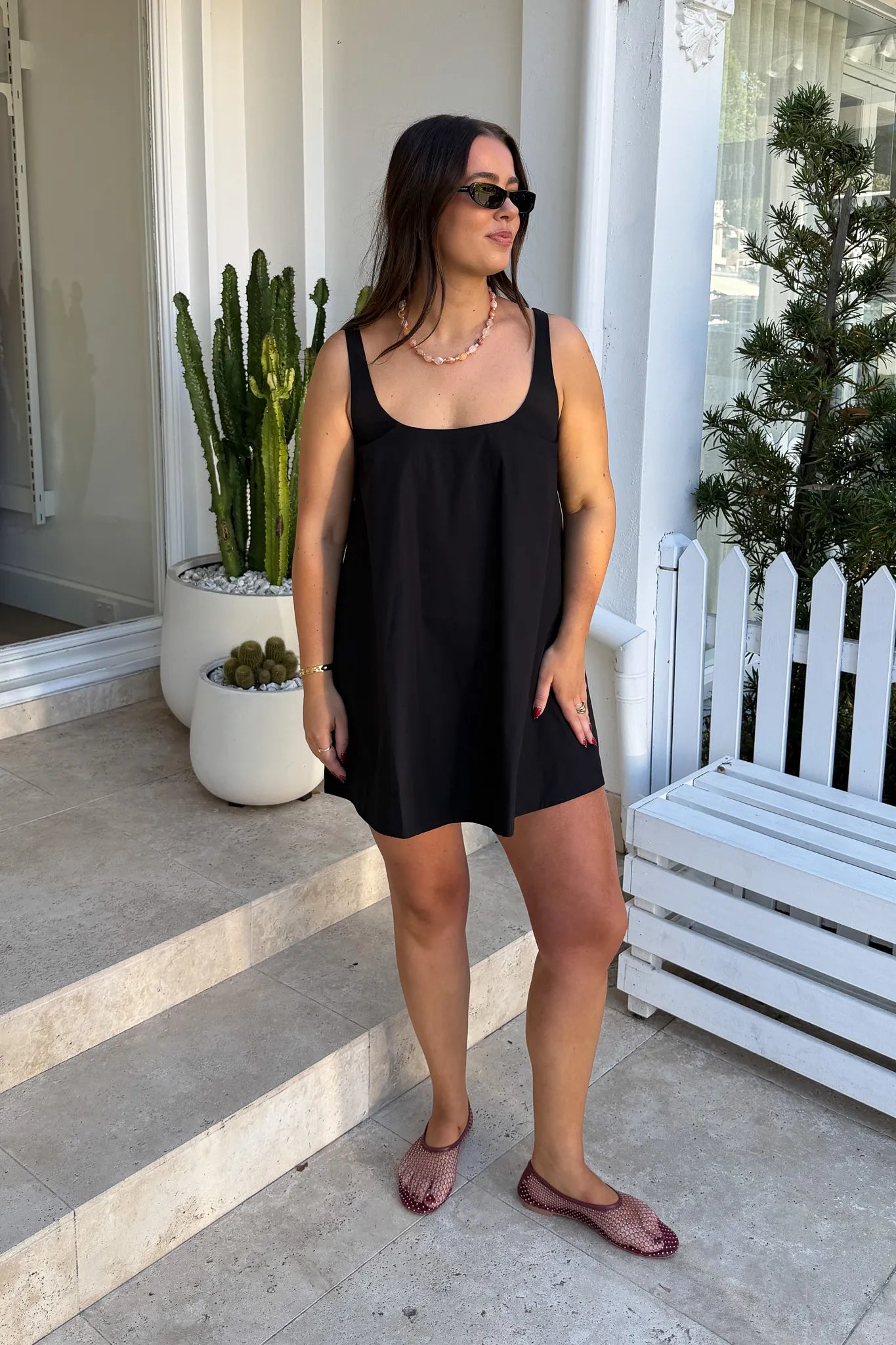 The Boston Mini Dress in Black by Sneaky Link - the ultimate easy summer dress you'll want to live in. Made from lightweight, breathable cotton poplin, this throw-on essential feels like a dream on warm days, offering effortless comfort with a clean, modern silhouette.