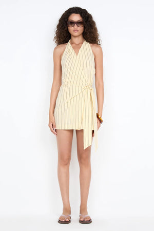 Kiana Wrap Mini Dress Butter/Choc Stripe