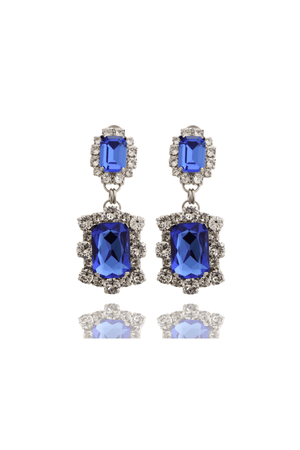 These exquisite earrings feature crystal embellishments in crystal and sapphire tones, creating a captivating display of elegance and sophistication. Crafted with silver plating, they exude a timeless charm.