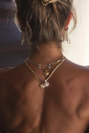 Introducing the Celine Necklace by Mountain and Moon, a charming mixed-metal heart pendant crafted with a balance of playfulness and refined detail. Framed in radiant gold with a contrasting silver centre, this keepsake celebrates self-devotion and elevated everyday styling. Lightweight and polished, it’s the perfect piece to wear daily or layer with your favourite chains.
