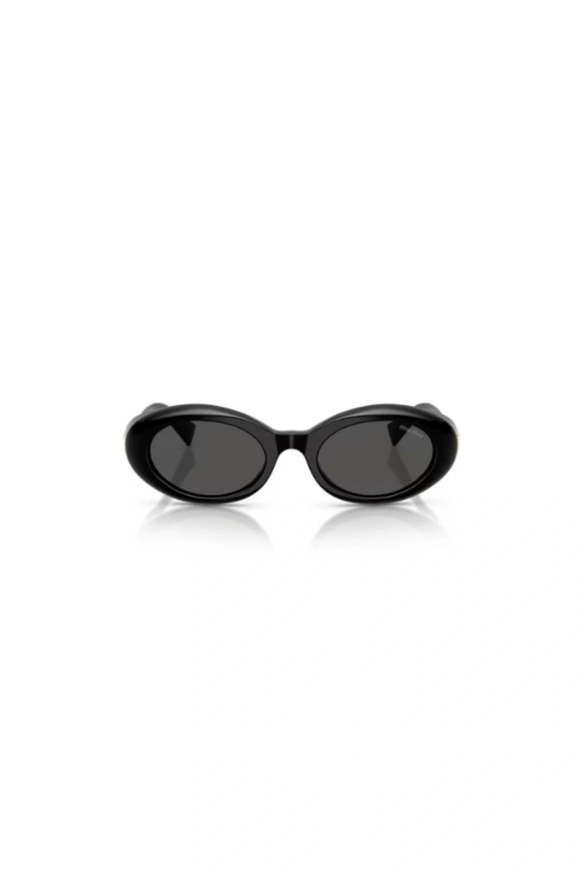 An eclectic design inspired by the runway, this oval-shaped sun style embodies Miu Miu's bold spirit with a new acetate technique. Two layers seamless combine to create a spoiler, adding full coverage and round volume to the frame. For added distinction, this detail is adorned with Miu Miu's iconic vertical logo.
