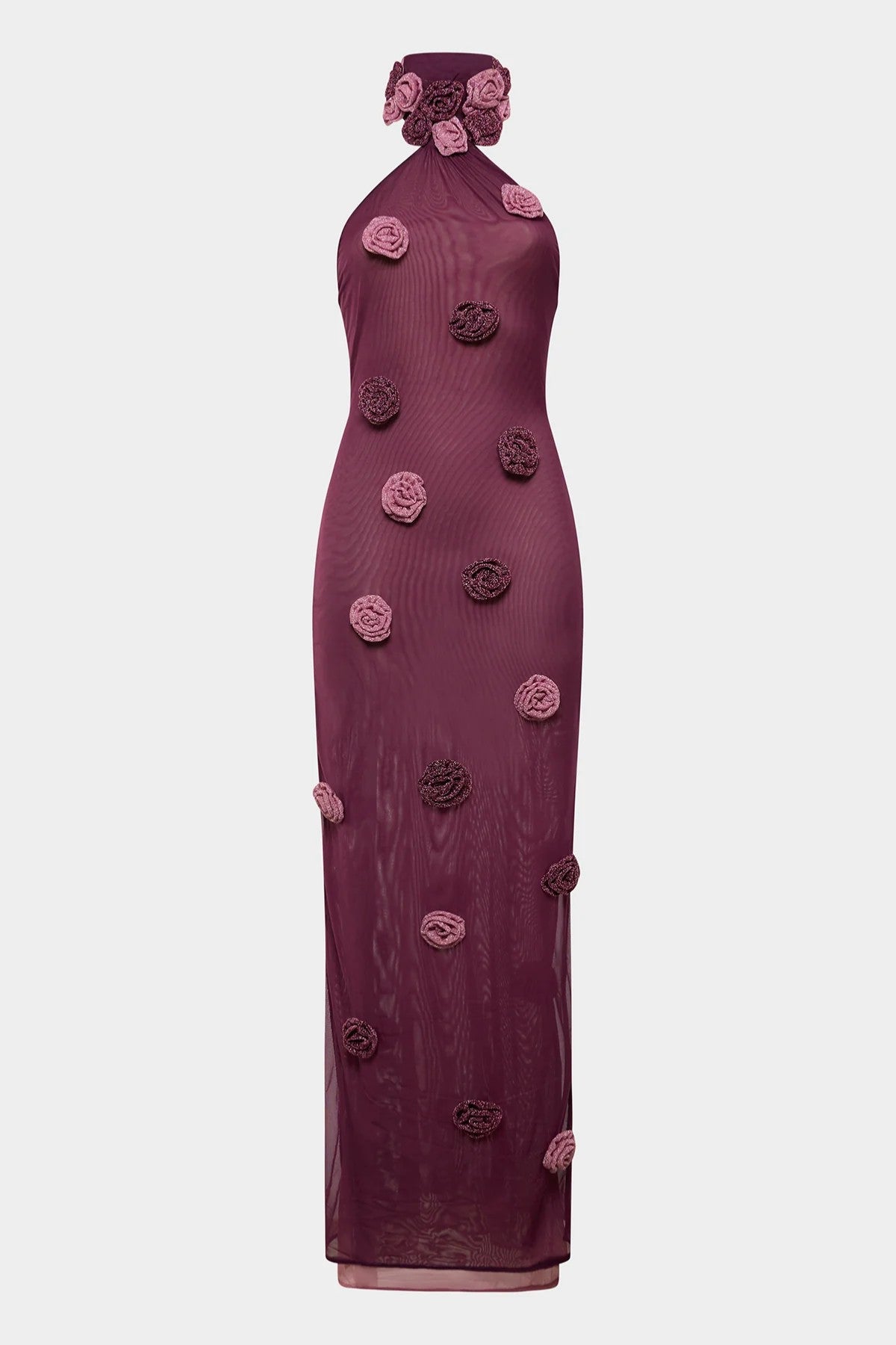 Introducing the Mesh Rose Asymmetric Dress Purple by Oséree — a striking dress designed with an asymmetric silhouette that highlights the body with modern elegance. Mesh rose detailing adds romantic texture and movement, creating a dynamic look that flows beautifully with every step.