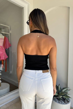 Elevate your essentials with the Bella Halter Tank by Sneaky Link. Crafted from a premium cotton-spandex blend for a soft, comfortable fit. Featuring a flattering deep scoop neckline and an open back, this top offers effortless style and breathability. The halter design provides extra support while maintaining a sleek, silhouette. Perfect for layering or wearing solo, this versatile tank is a must-have for any wardrobe.