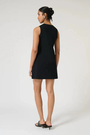 Introducing the Elodia Dress – Black by Onte — a refined mini crafted in mid-weight crepe knit. This sleeveless silhouette features a shift fit for easy wear, elevated by a detachable scarf belt that adds styling versatility. A timeless piece for modern dressing.