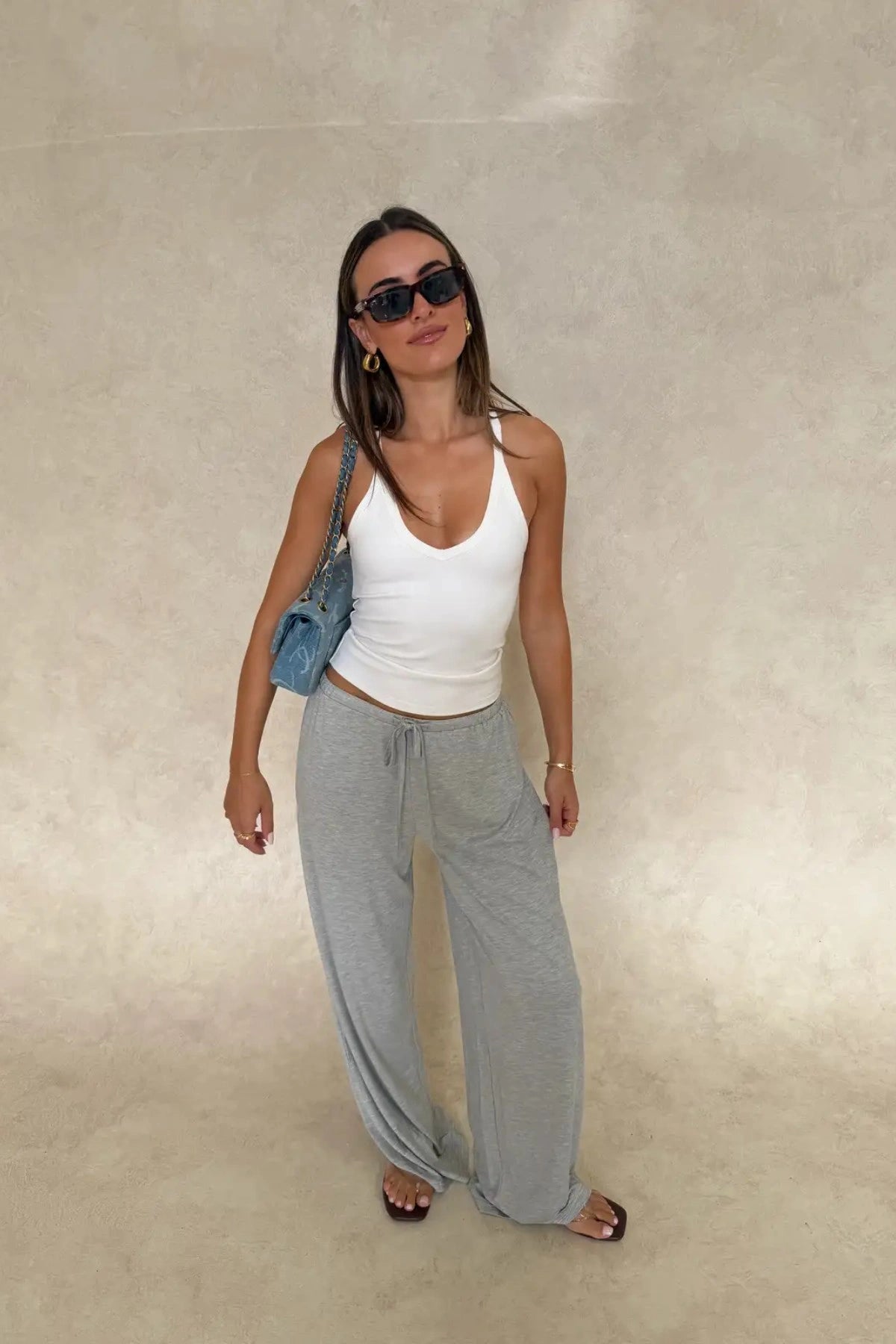 • Hunter Pant Grey by Sneaky Link – a soft wide-leg pant with elastic waist and relaxed drape. Perfect for elevated everyday wear.