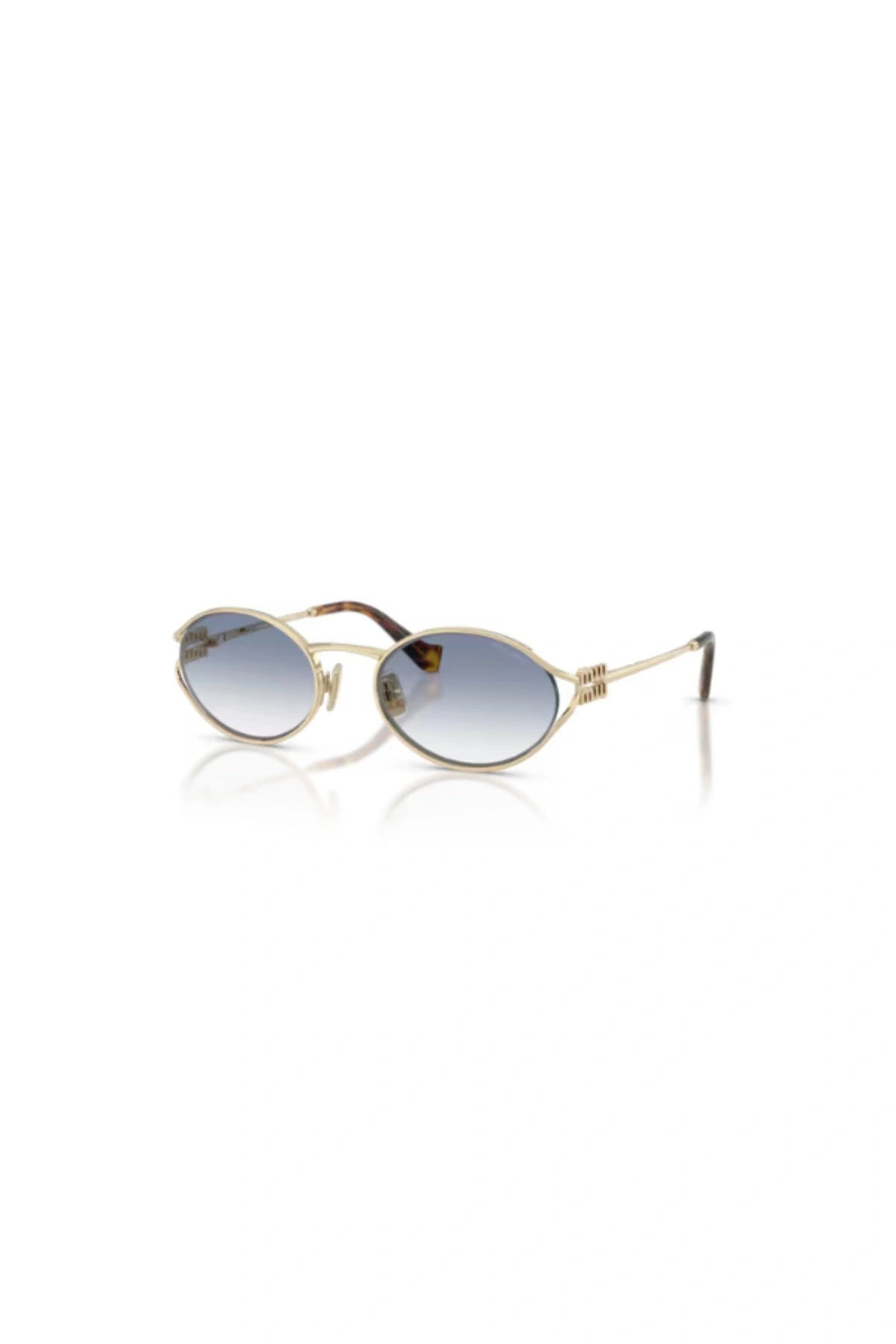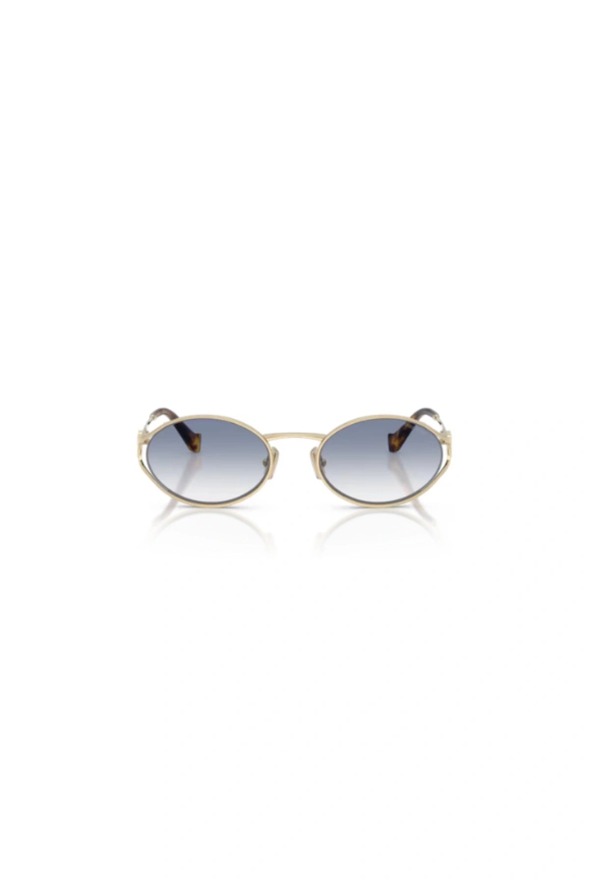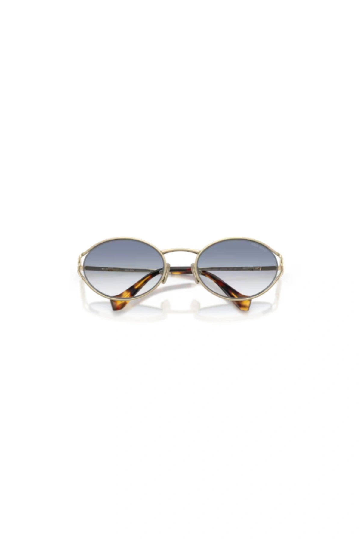 - Design: Oval frame with open metal rims and vertical Miu Miu logo hinge