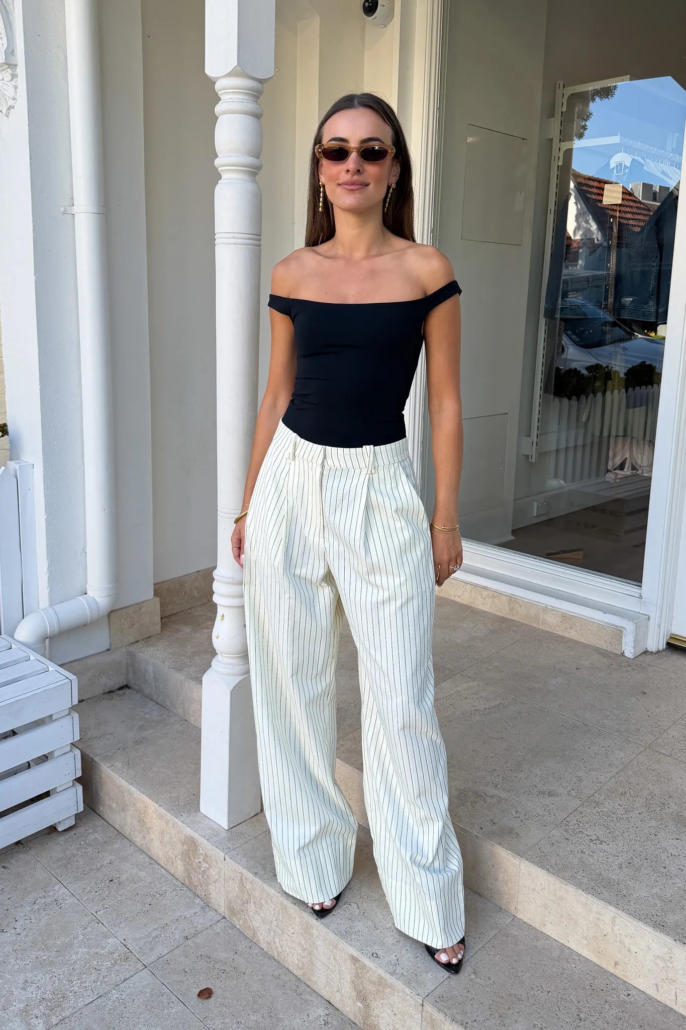 The Off Shoulder Bodysuit in Black by Sneaky Link features a clean off shoulder neckline and smooth, sculpted fit that draws attention to the collarbone while softly defining the waist and hips. Crafted in a soft, stretchy fabric that feels supportive without feeling tight, this is the kind of piece you reach for when you want to feel confident, feminine, and put together.