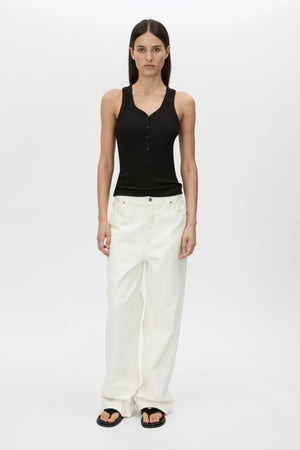 Introducing the Andy Denim Jean Salt by Camilla and Marc, a relaxed high-rise jean crafted from 100% cotton denim in a clean salt white wash. Finished with a five-pocket design and logo shank button closure, it's a wardrobe staple for effortless everyday dressing.
