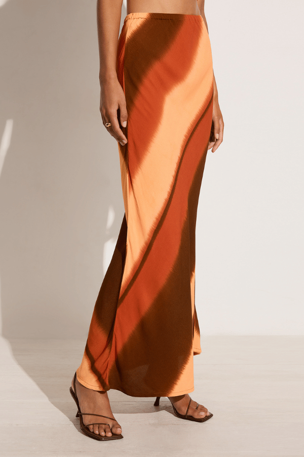Faithfull the Brand Tore Maxi Dress Ombre Stripe Macro Carob