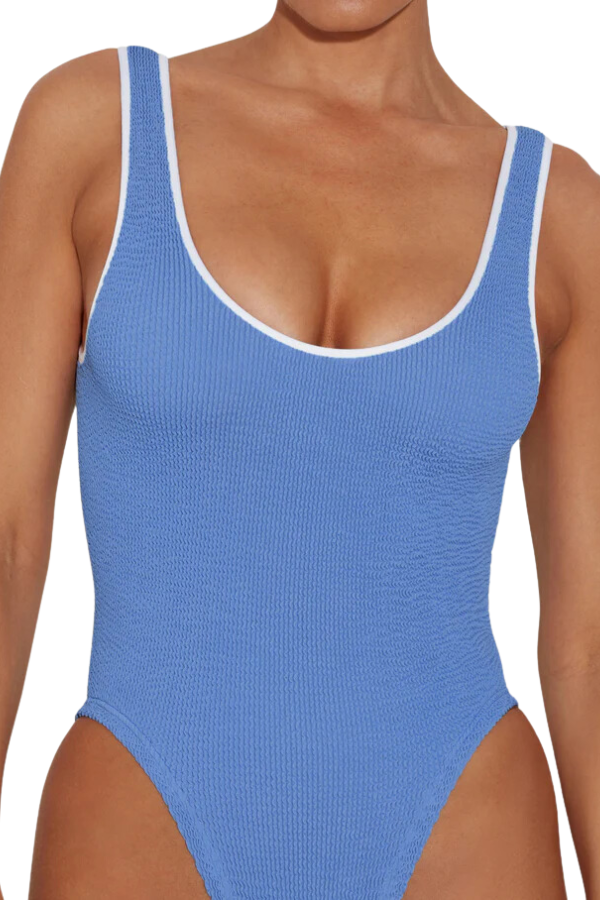 Get ready to embrace the 80s revival with Faye's sleek design, featuring a dipped neck and scooped back silhouette complemented by sporty contrast detailing. This swimsuit combines nostalgic flair with modern appeal, making it a must-have for your swimwear collection.