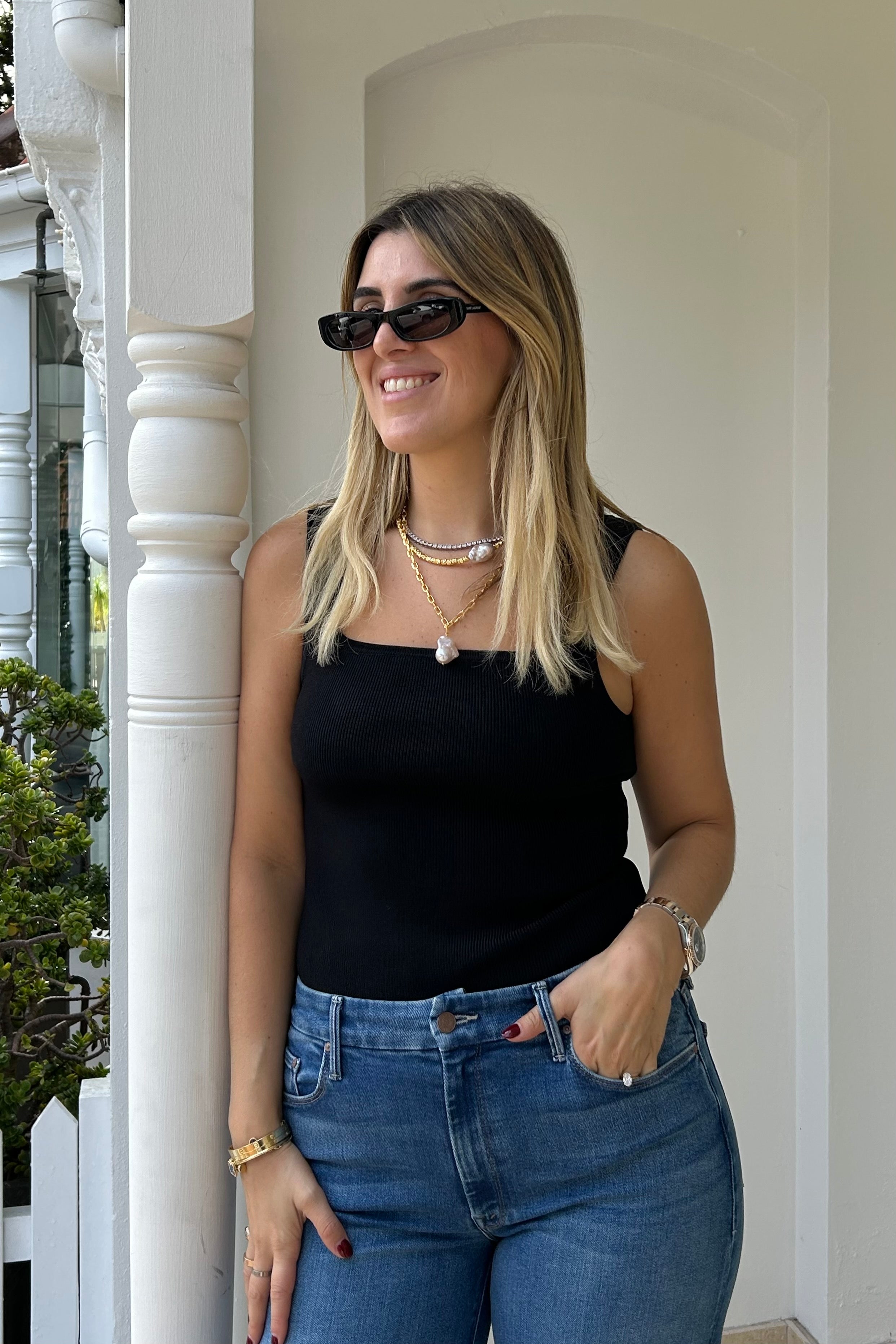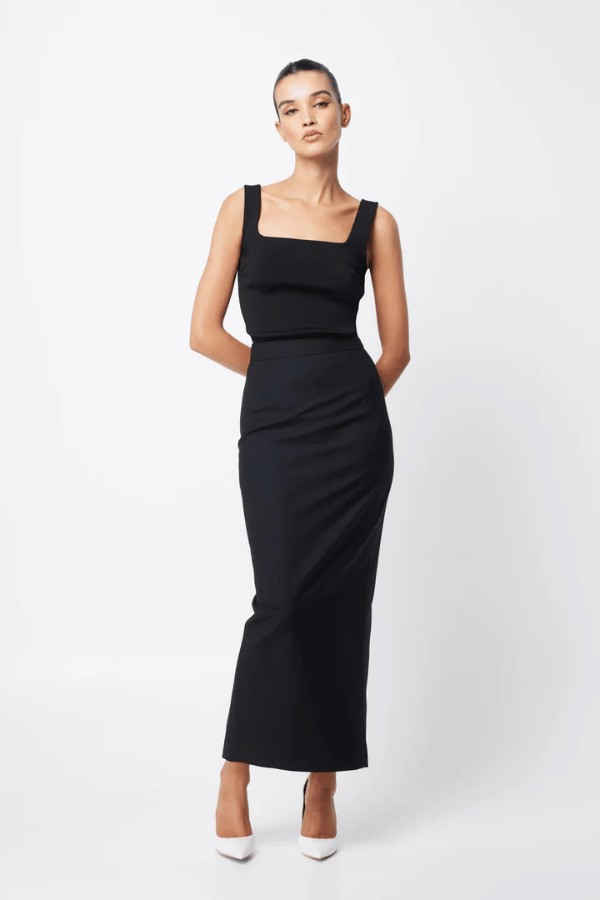 Introducing the Mossman Mayfair Tank in Black, crafted from high-quality crepe knit fabric. This tank top exudes an exquisite blend of elegance and comfort. Featuring thick straps and a square neckline, it creates a flattering silhouette that effortlessly transitions from laid-back occasions to more refined events. A timeless basic, this singlet top is designed to be a lasting staple in your wardrobe.