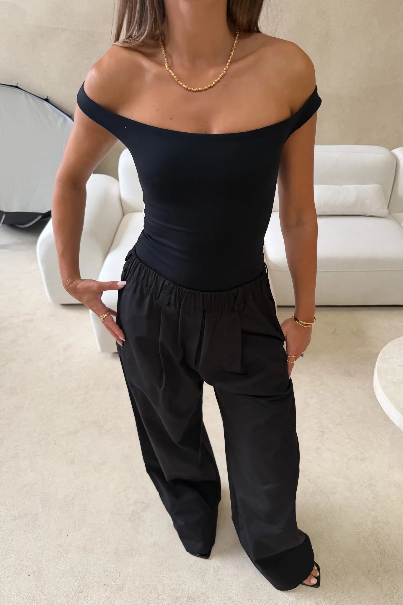Jaz Hand Paracord Pant Black by Sneaky Link, the ultimate wide-leg pant. Luxe, versatile, and designed for everyday ease with a comfortable mid-rise that can be styled high or low. Relaxed yet polished, these are the black pants every wardrobe needs.