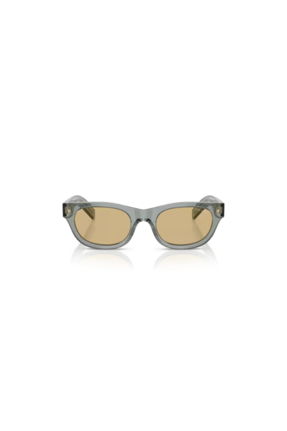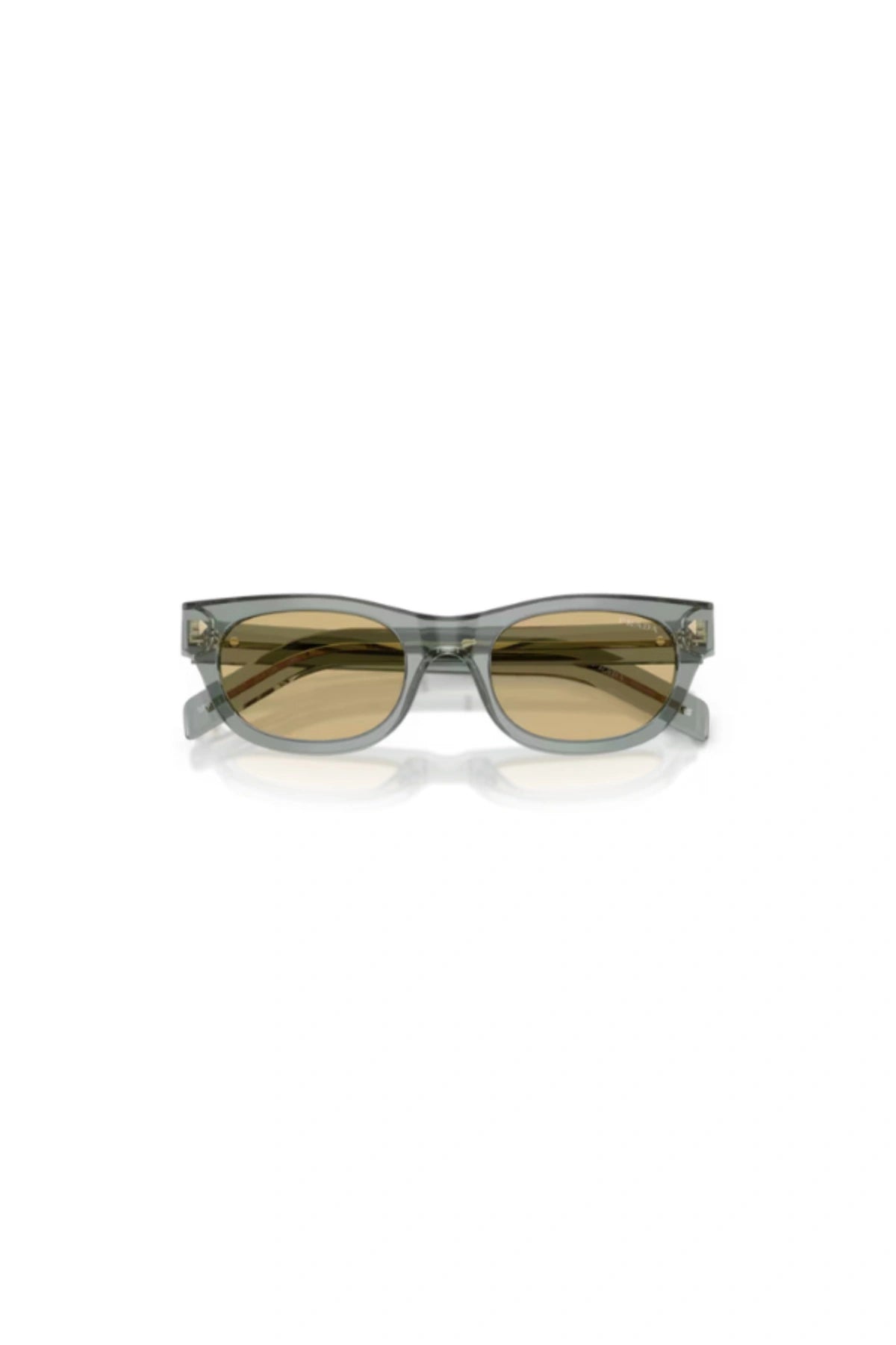 • Transparent Fog Sunglasses by Prada, translucent frame with silver rivets and plaque logo. A refined everyday style with luxe detailing.
