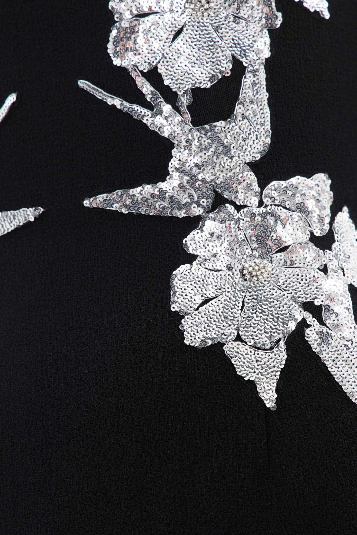 • Monroe Long Sleeve Mini Dress Black by Rebecca Vallance – A striking crepe mini with silver sequin appliqué, V-wire neckline, and padded shoulders, perfect for cocktail parties, formal dinners, or glamorous date nights.