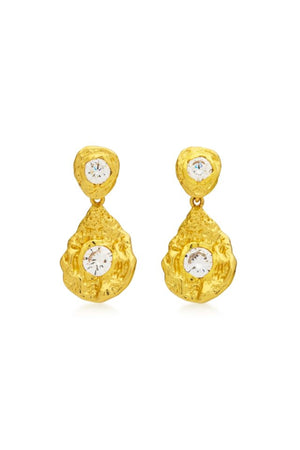 Introducing the Mersin Earrings by Amber Sceats, the ultimate finishing touch to elevate your look. Designed with sparkling cubic zirconia crystals set in crushed 24K gold plating, these earrings strike the perfect balance of bold elegance and timeless glamour.