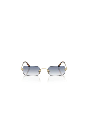 Introducing the MU B50S Sunglasses in Pale Gold by Miu Miu, a sleek and modern eyewear piece designed to elevate any look. Featuring a rectangular silhouette with a high bridge and gradient blue lenses, these sunglasses deliver both fashion-forward edge and sun protection. Ideal for styling with everything from sharp tailoring to vacation ensembles.