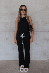 Introducing the Charlie Halter Top by Sneaky Link. The ultimate summer addition to your wardrobe. Featuring a chic halter neckline and an alluring open back, this top is designed for effortless style. The contrast ties add a playful touch, making it perfect for going from beach to bar. Pair it with the matching Charlie Pant for a comfortable and stylish look.