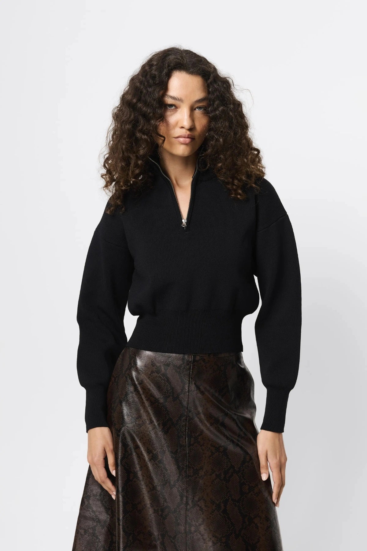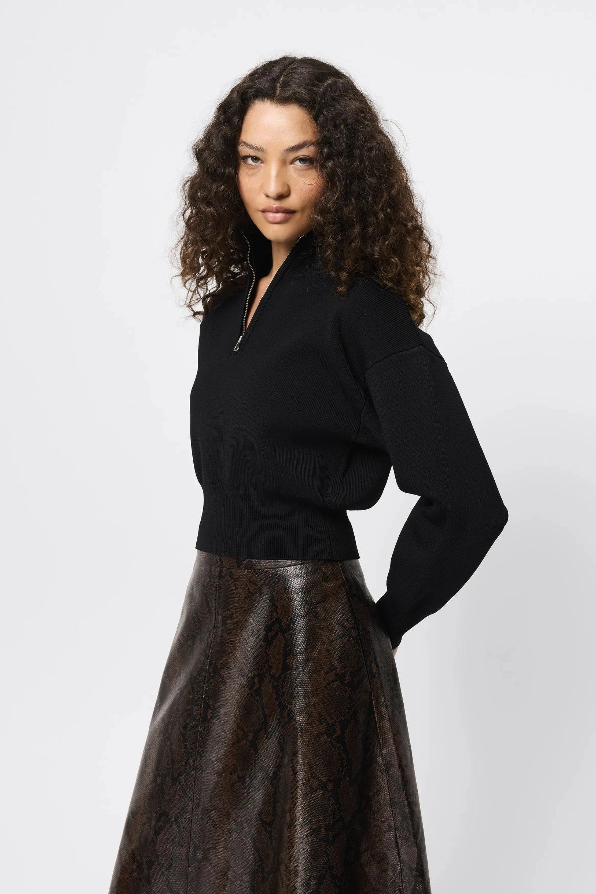 Introducing the Lexington Sweater Black by Mossman — a refined knit essential crafted in a structured milano crepe. Designed with a half-zip funnel neckline and relaxed silhouette, it delivers effortless polish for everyday and workwear styling.