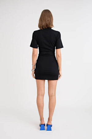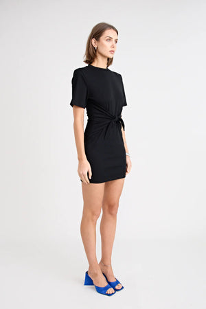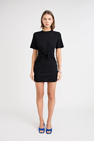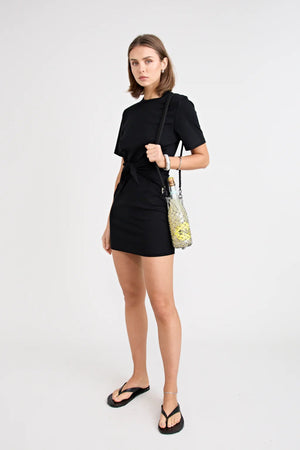 Introducing the Varley Mini Dress in Black by Pfeiffer — a modern take on the perfect tee-dress, designed in a clean mini silhouette with flattering wrap-tie versatility. Cut from a light-to-midweight stretch cotton jersey, it feels cool and breathable on the body, with double-lined ties you can wrap to the front or back to cinch the waist your way for effortless day-to-night styling.