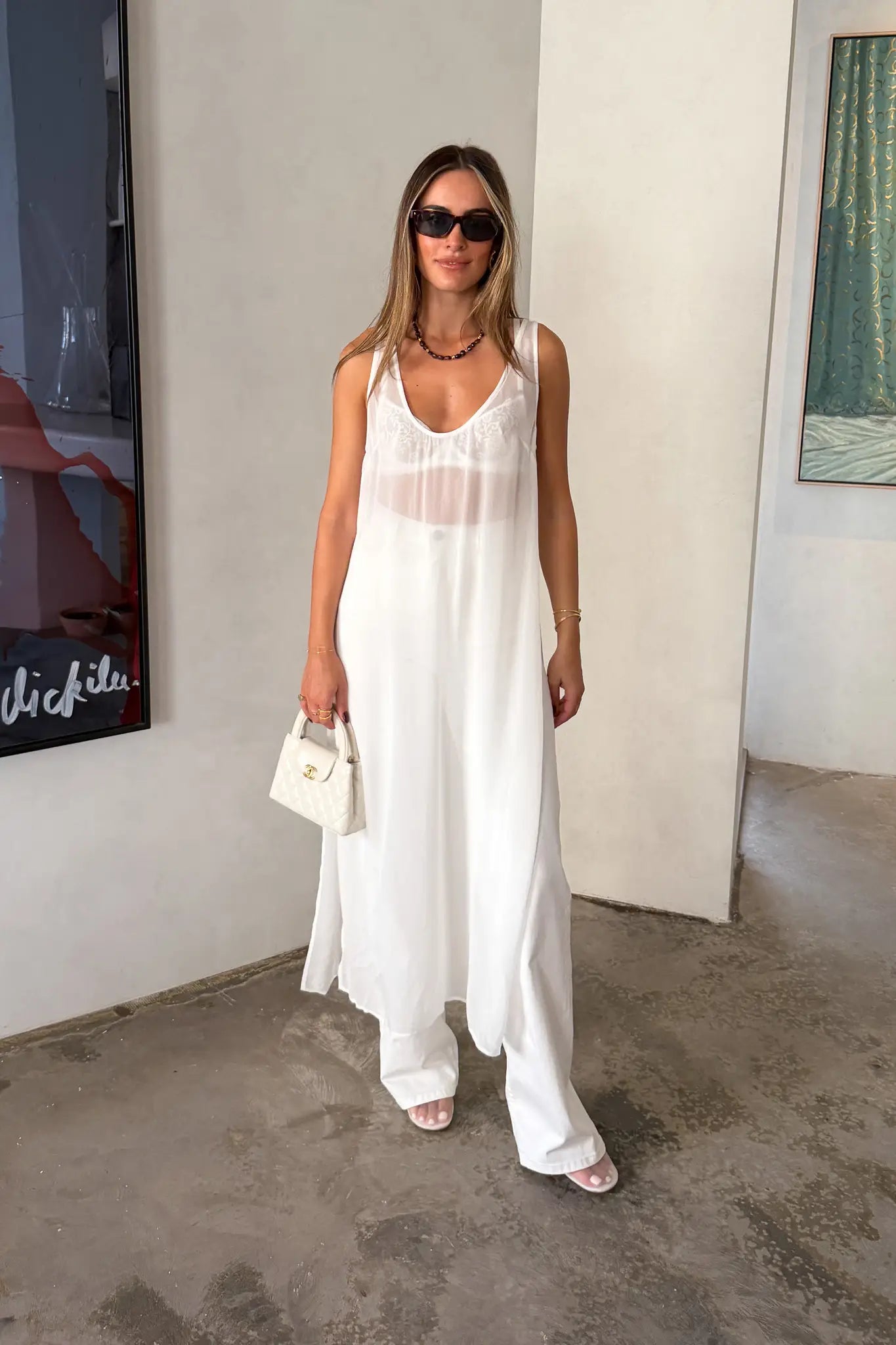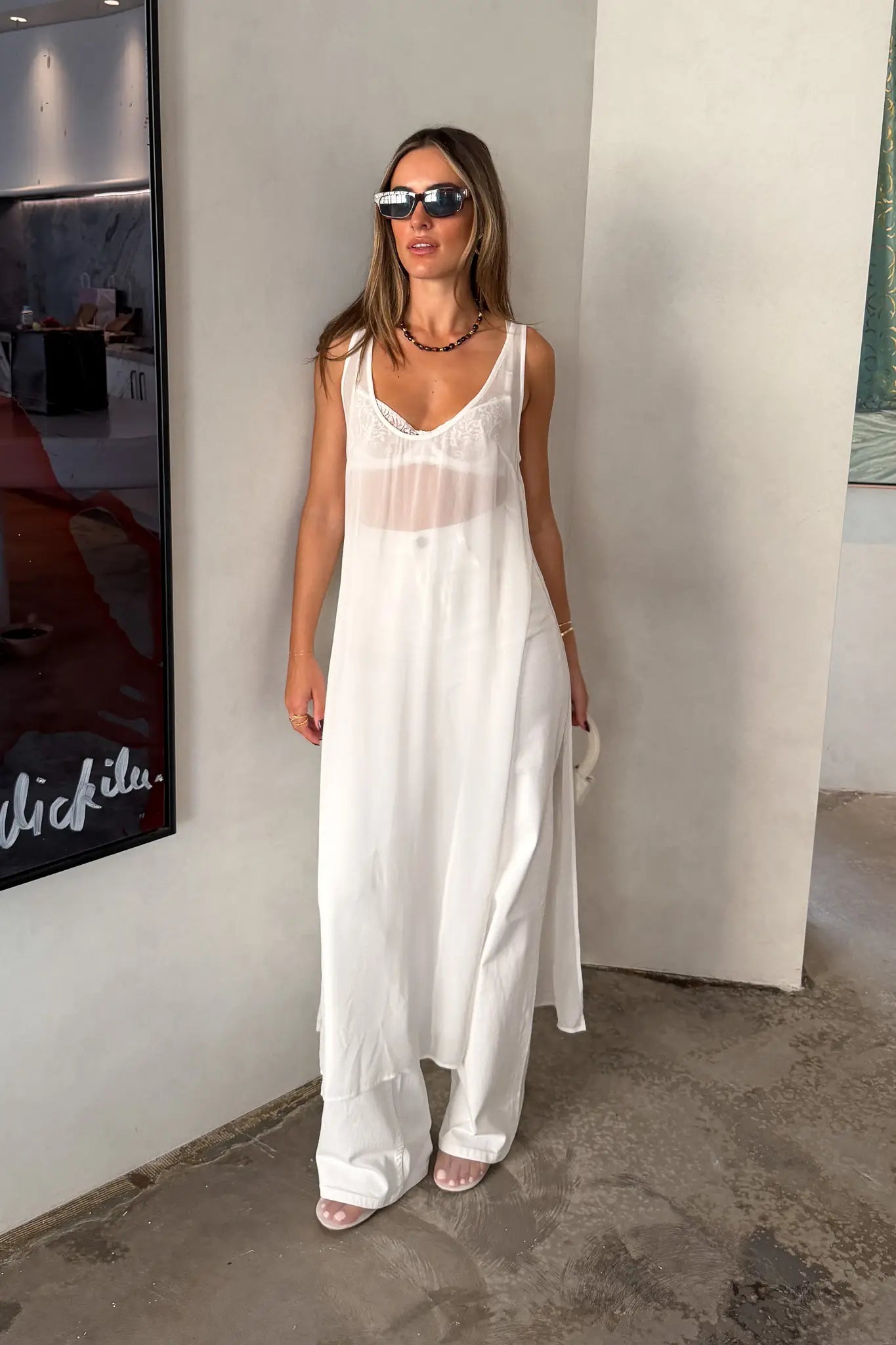 Sheer Tunic Dress White